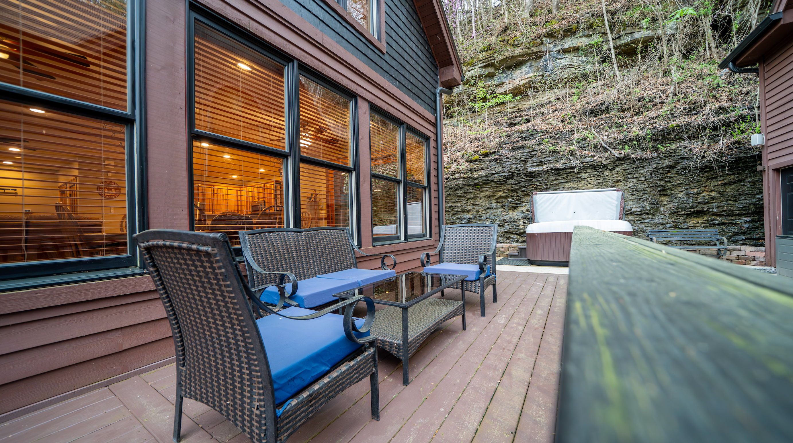 Yes, there's a hot tub right outside the back porch—perfectly placed with a view overlooking the river.And if things gettoohot, just head down the private walkway to the Wolf River, where you can kayak, swim, or cast a line and fish. It’s the best of both worlds!
